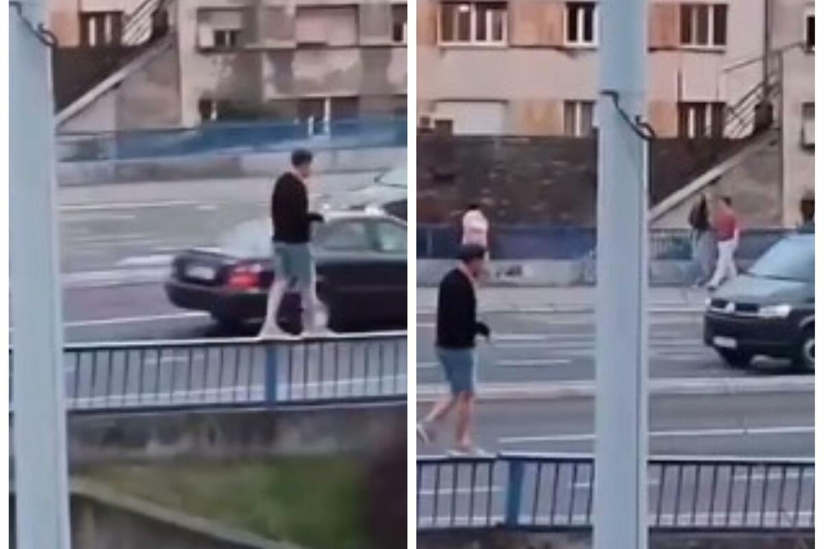 Prolaznici nisu obraćali pažnju na njega, a na sreću, momak nije prešao most nego se nakon nekoliko koraka spustio na asfalt.