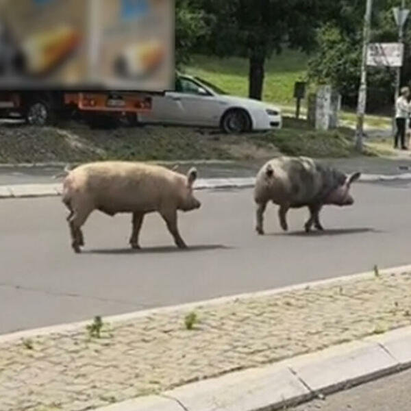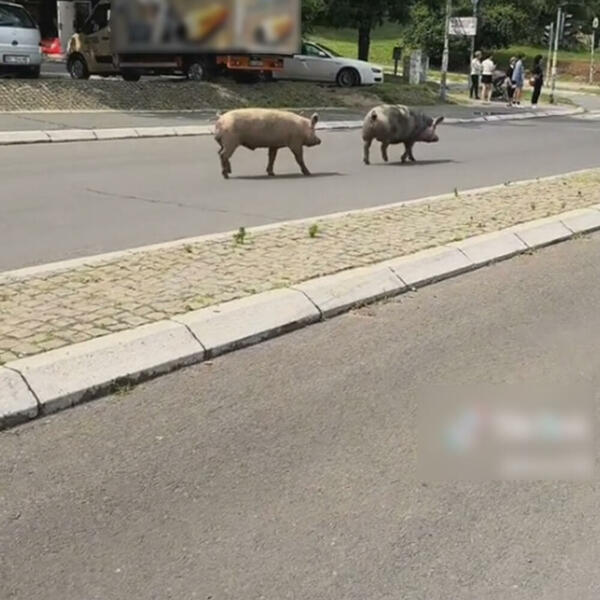 Na snimku se vidi kako se svinje nonšalantno šetkaju asfaltom, sasvim opušteno, ne hajući za ljude unaokolo.
