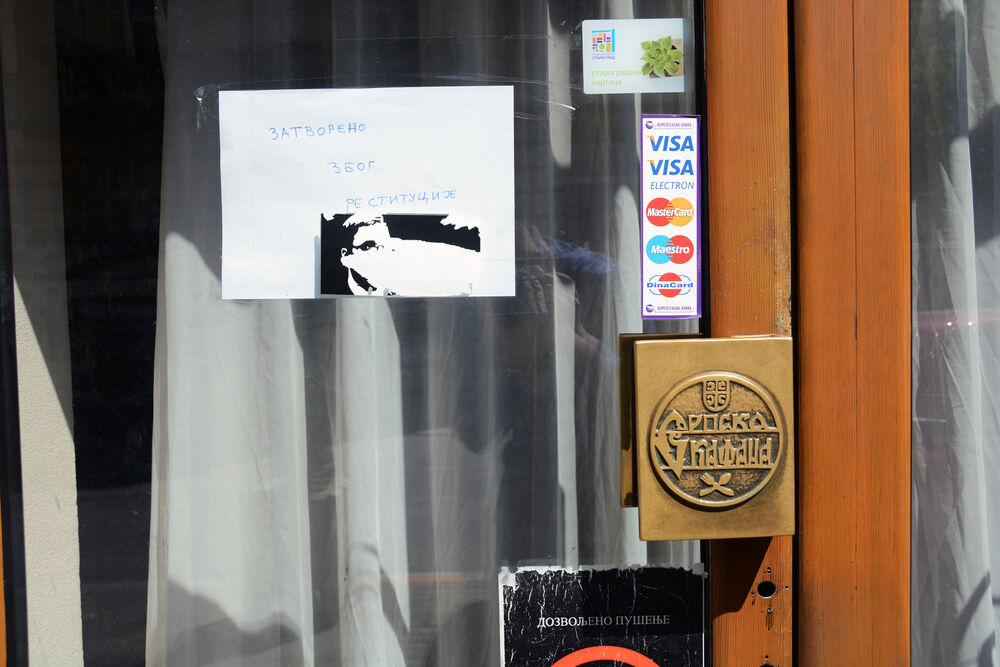 Legendarna kafana, kako piše na obaveštenju na vratima ovog lokala, zatvorena je zbog restitucije.