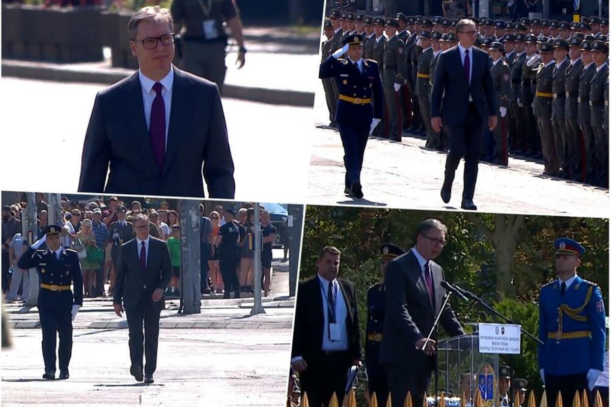 Pre samog početka svečanosti, pukovnik Vojske Srbije Srđan Blagojević predao raport predsediku Aleksandru Vučiću.