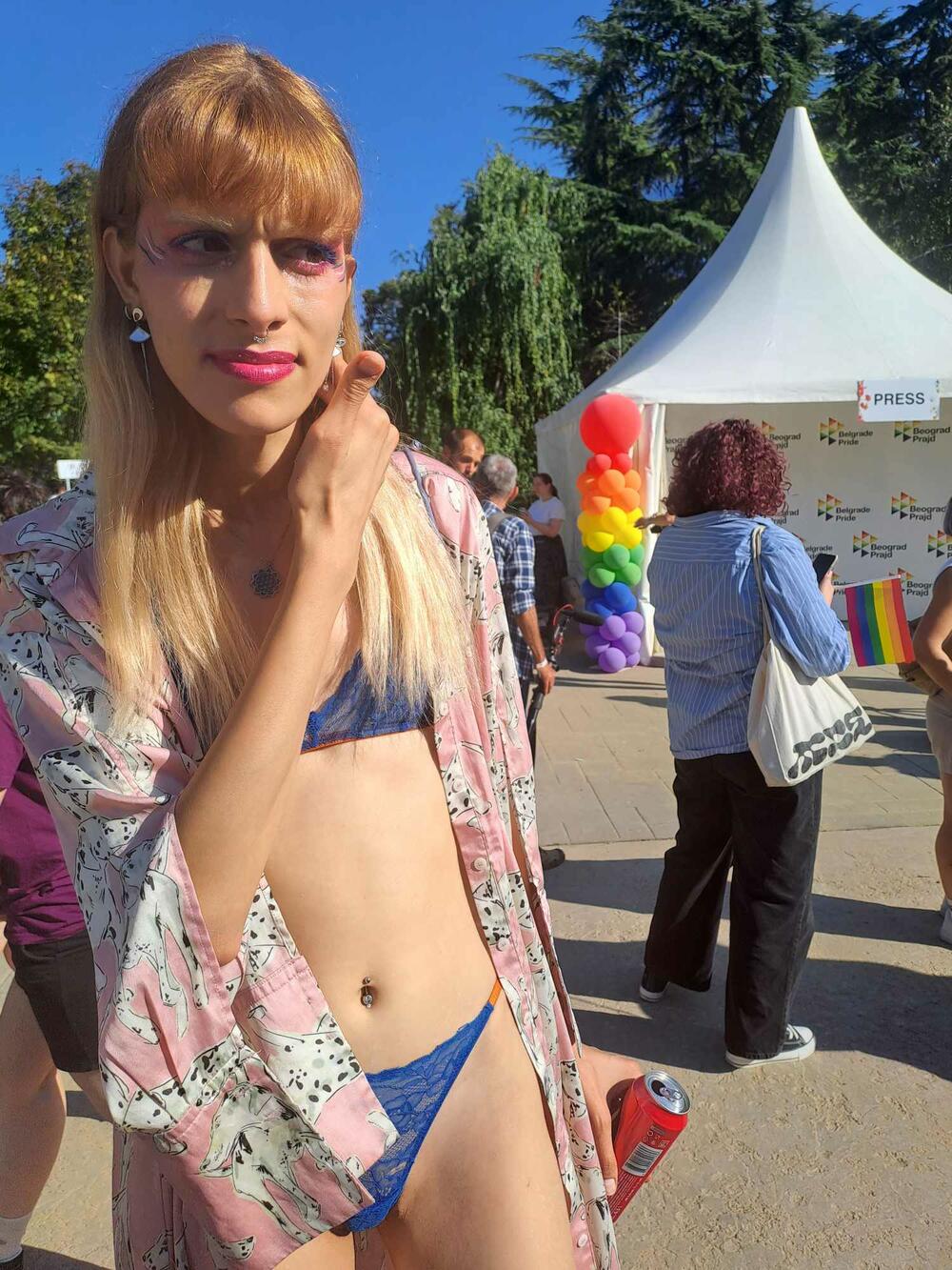 Među okupljenima na Paradi ponosa koja se danas održava u Beogradu pod sloganom "Nismo ni blizu“, našla se i mlada Ajris.