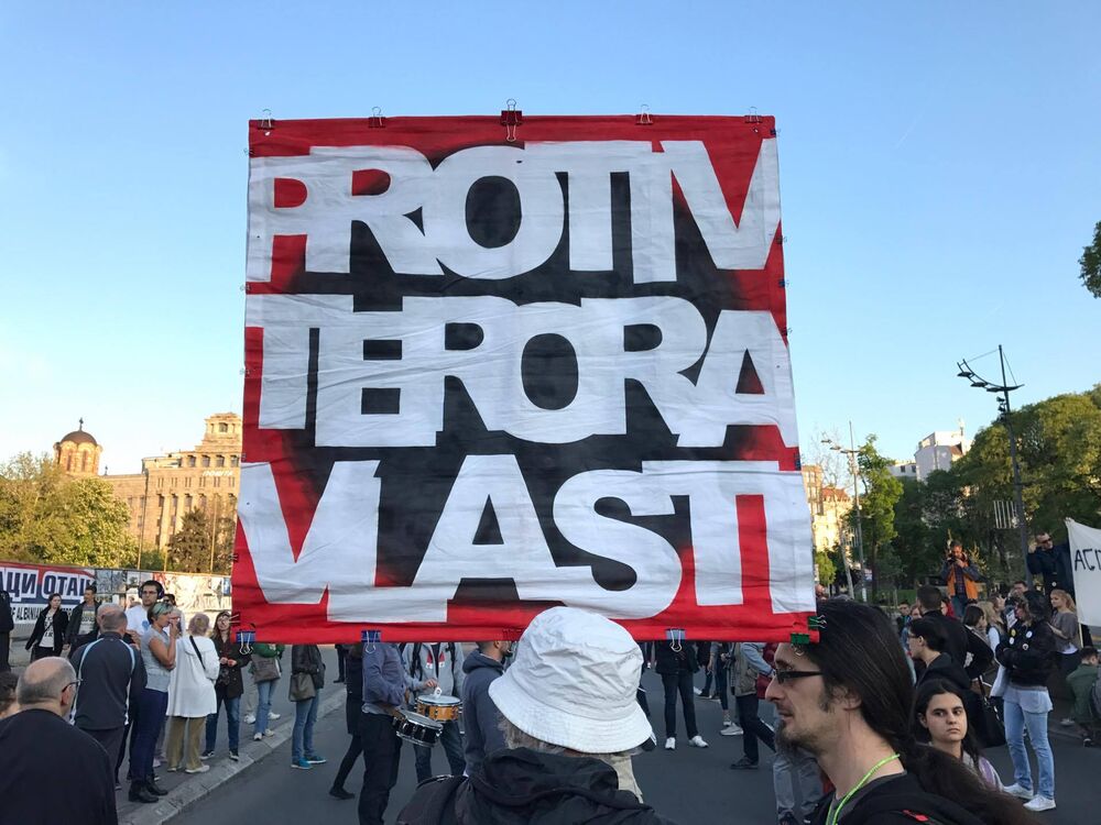 - Dragi naši, Svima vama koji šetate sa nama svakog dana, koji pomno pratite sva dešavanja i ulažete svoje vreme, energiju i nadu u ove proteste, najpre želimo da kažemo hvala. Hvala vam što izlazite na ulice i govorite šta mislite o ovoj vlasti i ovakvom sistemu. Hvala vam što ste nam dokazali da još uvek postoje heroji među nama, i da još uvek postoji ona stara, dobra i lepa Srbija, i onaj dobar i stari i prelepi Beograd. Već neko vreme se postavljaju pitanja ko vodi ovu stranicu, ko to odgovara medijima u ime svih nas i da li postoji zapravo neka organizacija. Zbog toga smo odlučili da vam odgovorimo na pitanja. Mi nismo ni Jankovićevi, ni Jeremićevi, ni Soroševi, nismo žuti, niti strani plaćenici, ni narkomani, a ni alkoholičari.
