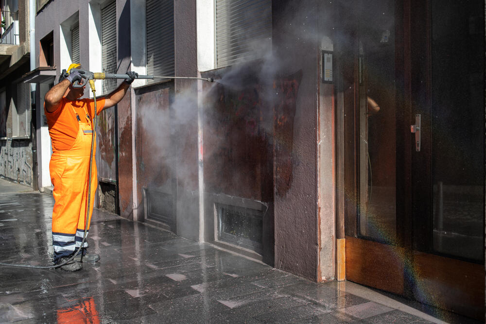 Neprimereni grafiti i druge žvrljotine koje su krasile zgrade užeg jezgra i dalje s vremena na vreme osvanu na fasadama, ali vrlo brzo nestanu pod mlazom vode.