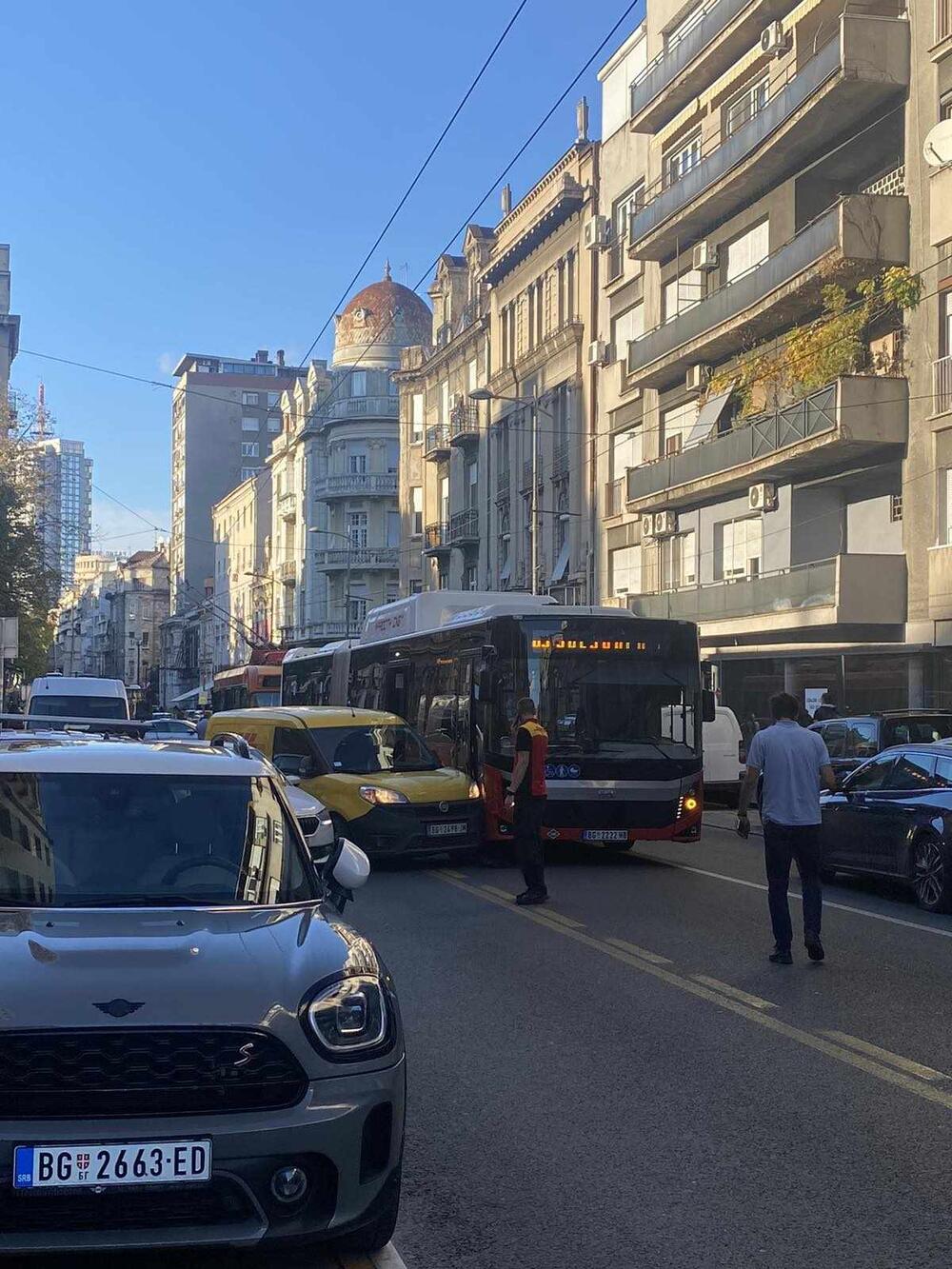 TOTALNI KOLAPS U SVETOGORSKOJ: Sudarili se autobus na liniji 65 i kombi, BUKVALNO SVE STOJI! (FOTO)