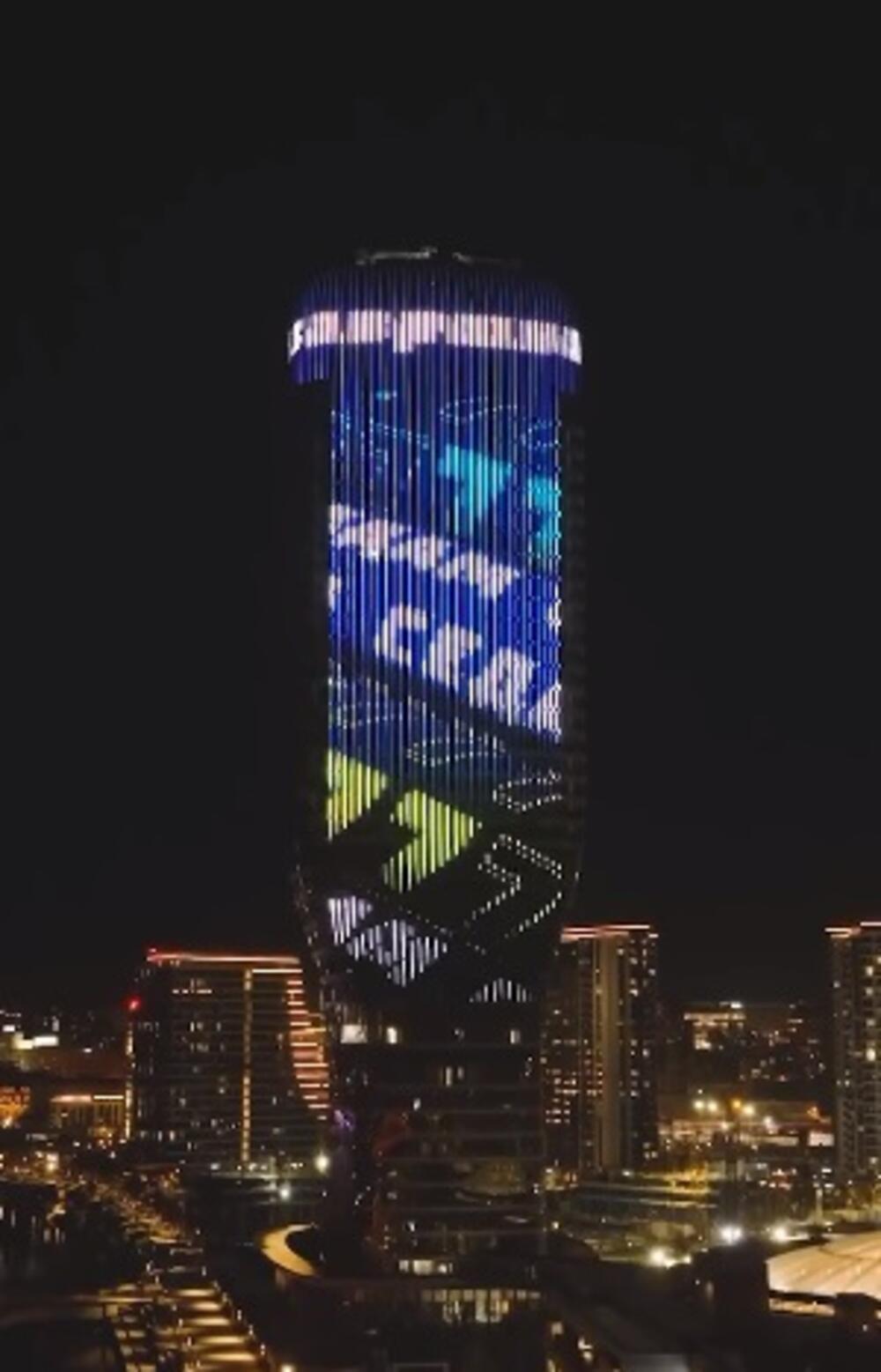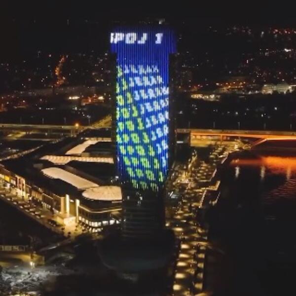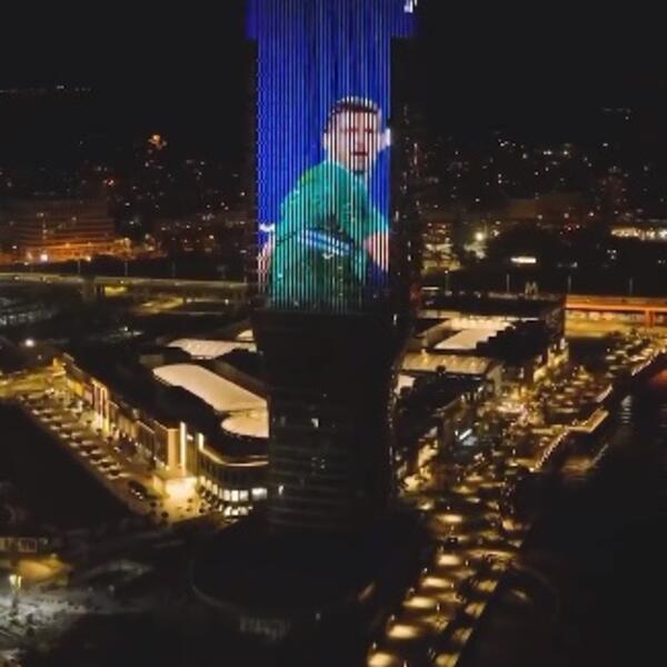Na Kuli Beograd u okviru kompleksa "Beograd na vodi", pojavio se veliki snimak u kojem se nabrajaju svi veliki Đokovićevi uspesi...