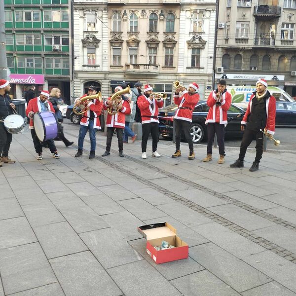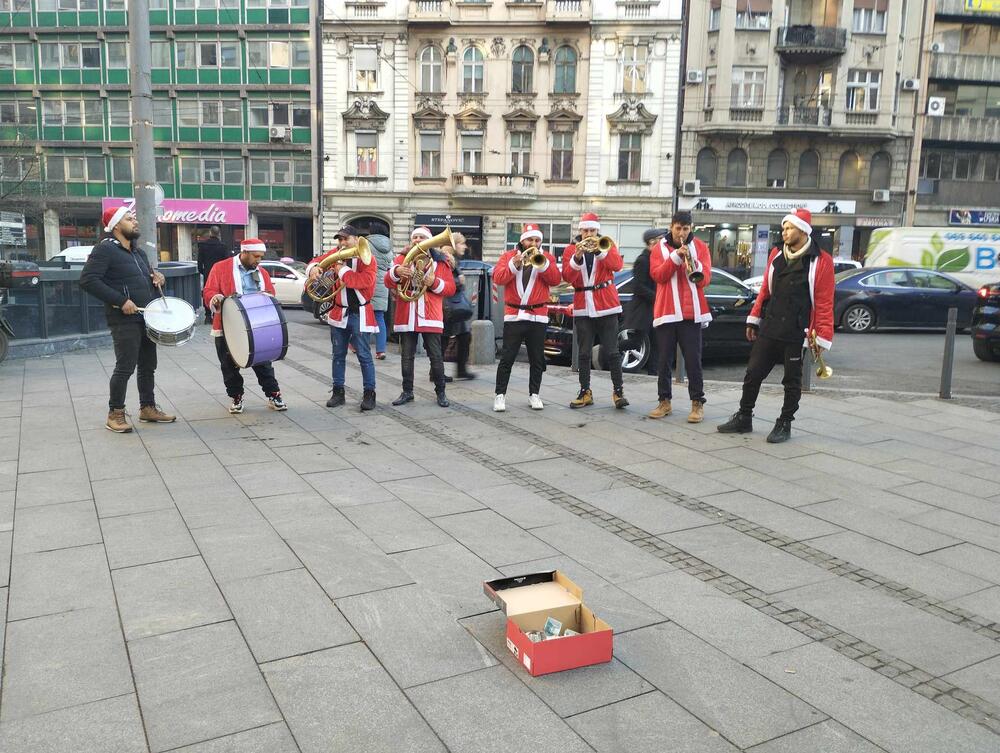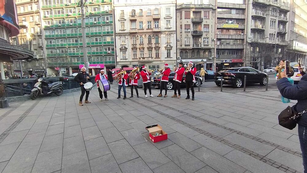 Čuvenom melodijom nekoliko trubača, obučenih u Deda Mrazeve, razbilo je monotoniju pred kraj poslednje nedelje u 2023. godini.