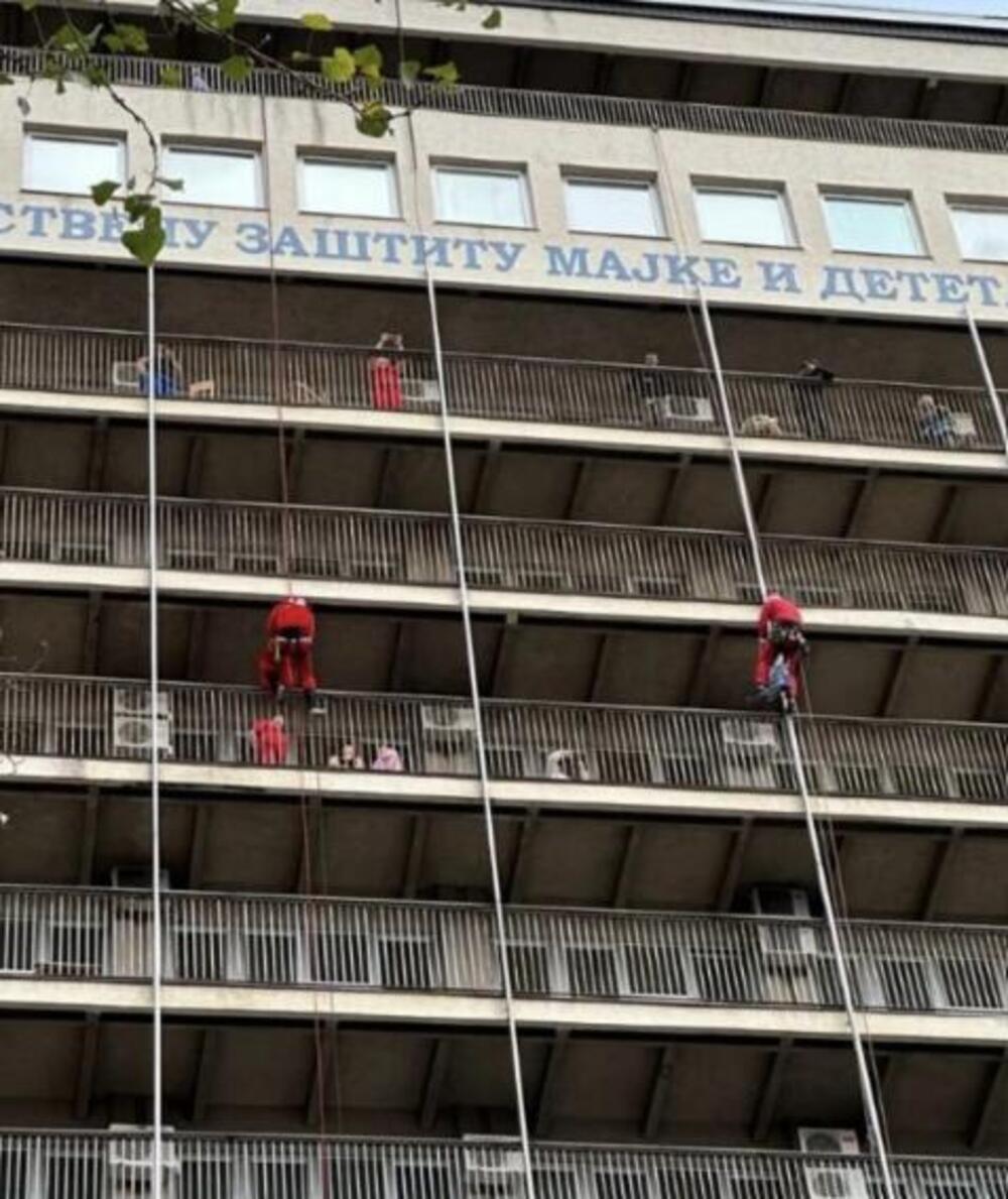 Pripadnici Specijalne antiterorističke jedinice (SAJ) spustili su se užadima sa krova Instituta za majku i dete obučeni kao Božić Bate i obradovali poklonima mališane koji leže na Institutu.