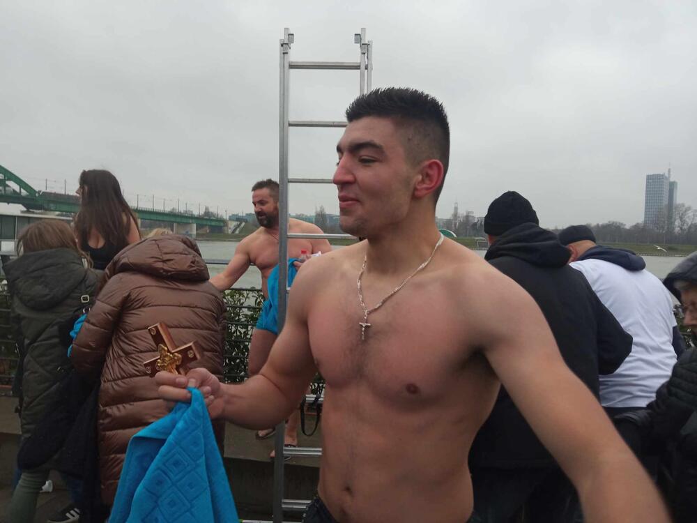 "Voda je ledena, ali meni kao policajcu i Srbinu ništa nije teško. Čast mi je da sam prvi stigao do krsta, posebno jer mi je prvi put da učestvujem", poručio je ovaj delija za Espreso.