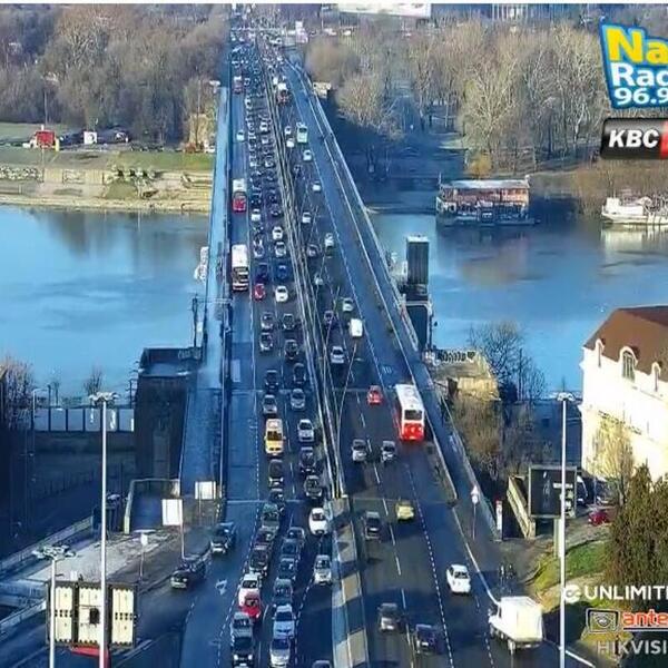 Kolona automobila u smeru ka gradu je na Gazeli, Brankovom, Pančevačkom, kao i na Plavom mostu