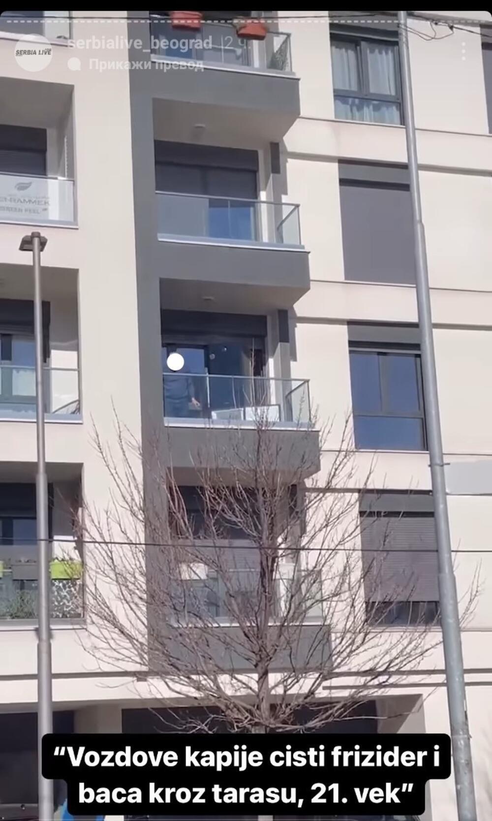 - Voždove kapije, čisti frižider i baca kroz terasu. 21. vek - navodi se na video-snimku.