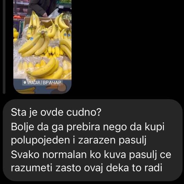 - Šta je ovde čudno. Bolje da ga prebira nego da kupi polupojeden i zaražen pasulj. Svako normalan ko kuva pasulj će razumeti zašto ovaj čovek to radi - piše u drugoj objavi.