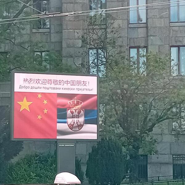 Postavljeni su i bilbordi sa natpisom na srpskom i kineskom jeziku: "Dobro došli poštovani kineski prijatelji".