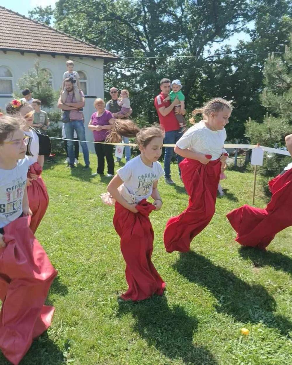 U punoj porti hrama Svete Petke u Rušnju uživali smo u nastupu KUD Tandrčak Rušanj kao i u takmičenjima dece u kucanju jajima, trci u džaku i trci sa jajetom u kašiki.