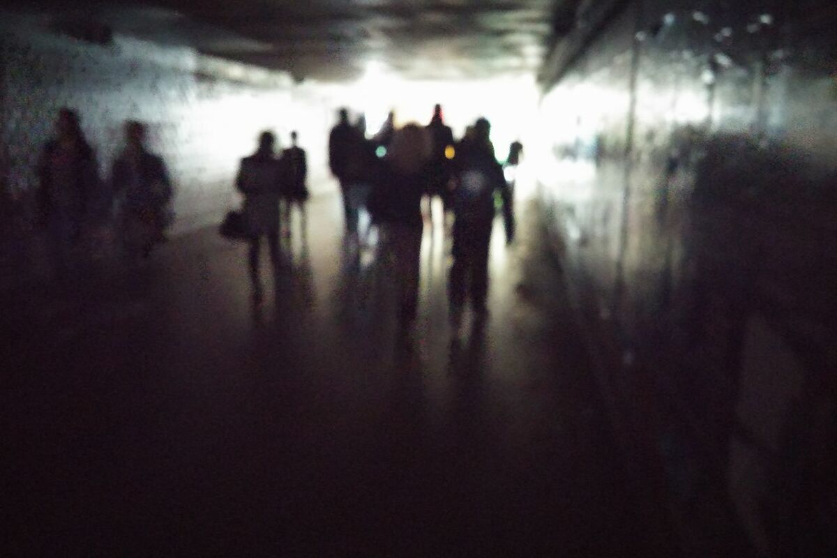 Ljudi koji prolaze ovuda koriste svetlo na svojim mobilnim telefonima, ne bi li bar malo osvetlili put i videli kuda prolaze.