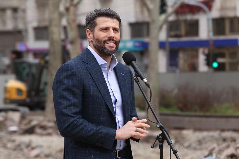 Predsednik Privremenog organa Grada Beograda Aleksandar Šapić obišao je na početku radova Trg Nikole Pašića, februara 2024.