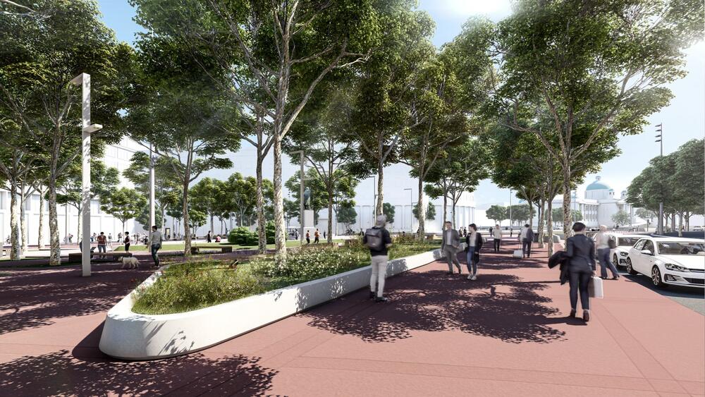 Desetak godina je trajala razrada ideja i analiza predloga koje su nudili gradski urbanisti i arhitekte, da bi 1986. godine bilo usvojeno urbanističko rešenje arhitekte Olge Milićević-Nikolić. Njime su predviđene velike betonske žardinjere zahvaljujući kojima je pošumljena zona ispred zgrade Doma sindikata, a kaskadni bazen sa malim vodoskocima je dobio veliko „vrelo“ na jednom kraju.