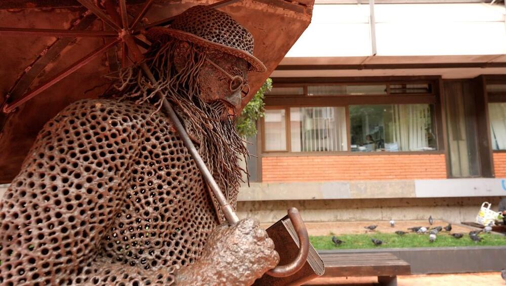 Delo je poznatog umetnika Borisa Deheljana, a sastavljeno je od šrafova, matica, armature i žica.