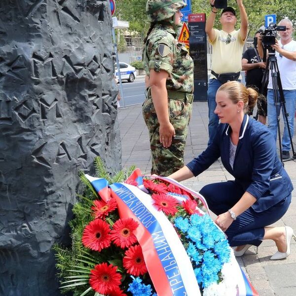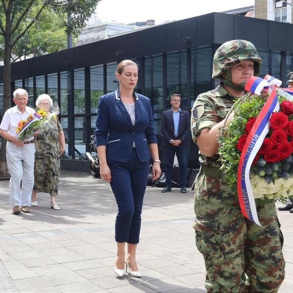 Violeta Filip je podsetila da polaganjem venaca na Spomenik na Terazijama odajemo počast petorici obešenih rodoljuba, ali i da se na taj način sećamo svih žrtava nacističke represije u Drugom svetskom ratu.