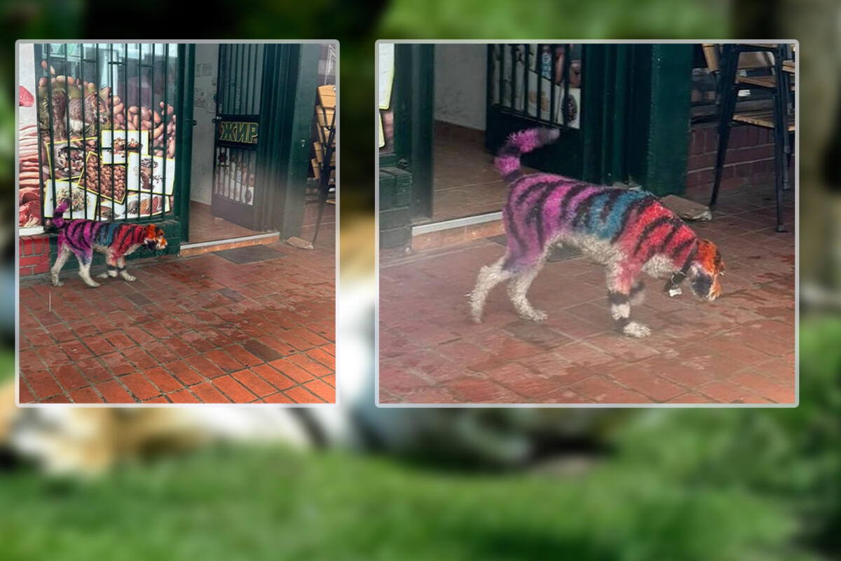 Ko god da je ovo uradio, verovatno je koristio kolor sprej, a pas na kraju liči na šarenog tigra.