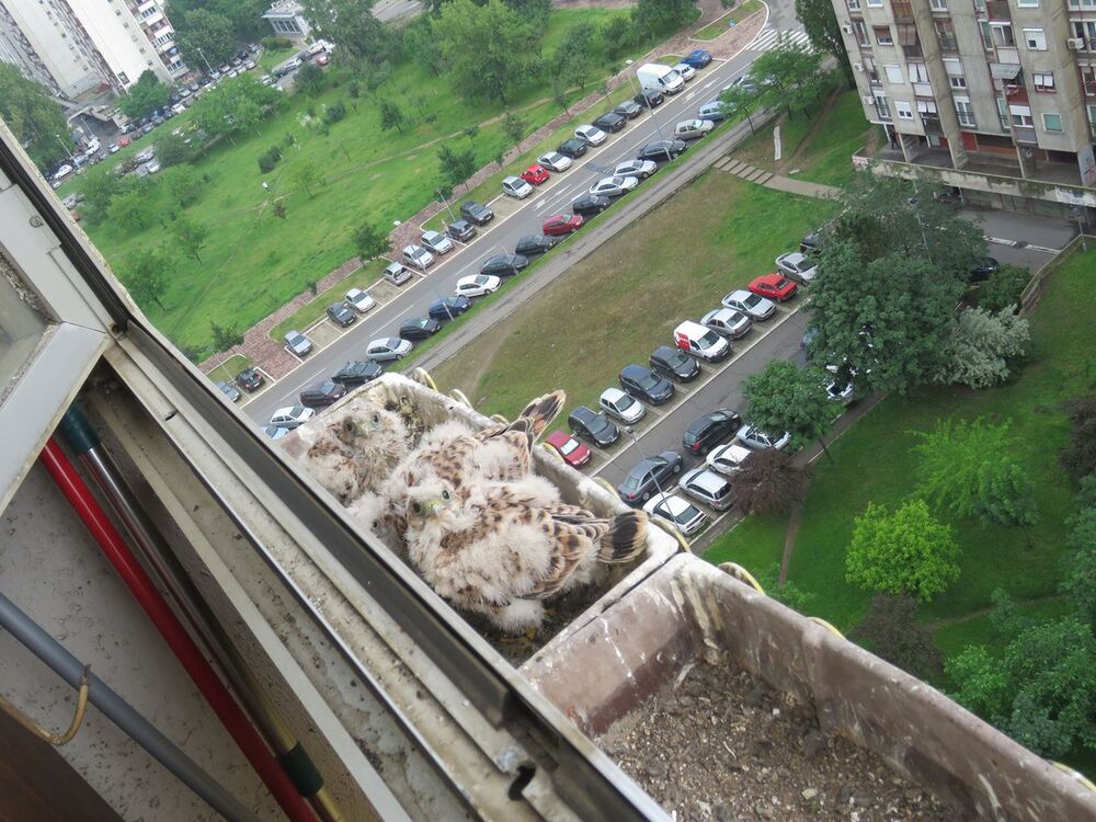 U pitanju su sokolovi koji su se ugnezdili na jednoj terasi usred Novog Beograda. Fotografije su okačene na Tviter nakon čega su se javili mnogi korisnici koji su potvrdili da ih sve češće viđaju i na svojim terasama.