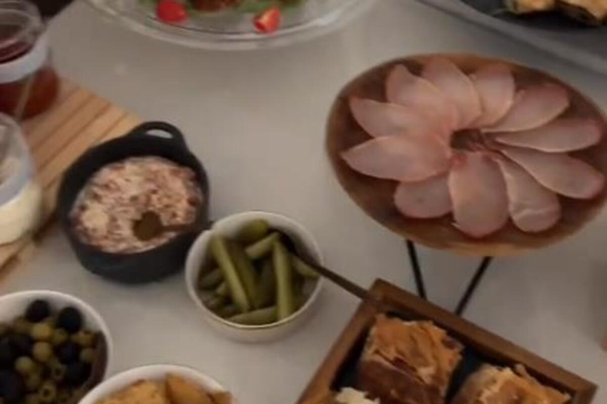 Na snimku se vidi zaista dobra ponuda hrane, pa se na stolovima pored više vrsta suvog mesa nalaze i različiti slani rolati, nekoliko vrsta sira i kačkavalja. Tu su nezaobilazne pite, velika ponuda salata, što sezonskih što ostalih, nekoliko jela od jaja, viršli, kobasica i sve sličnog što se može naći na mnogim trpezama u toku prepodnevnog obroka.