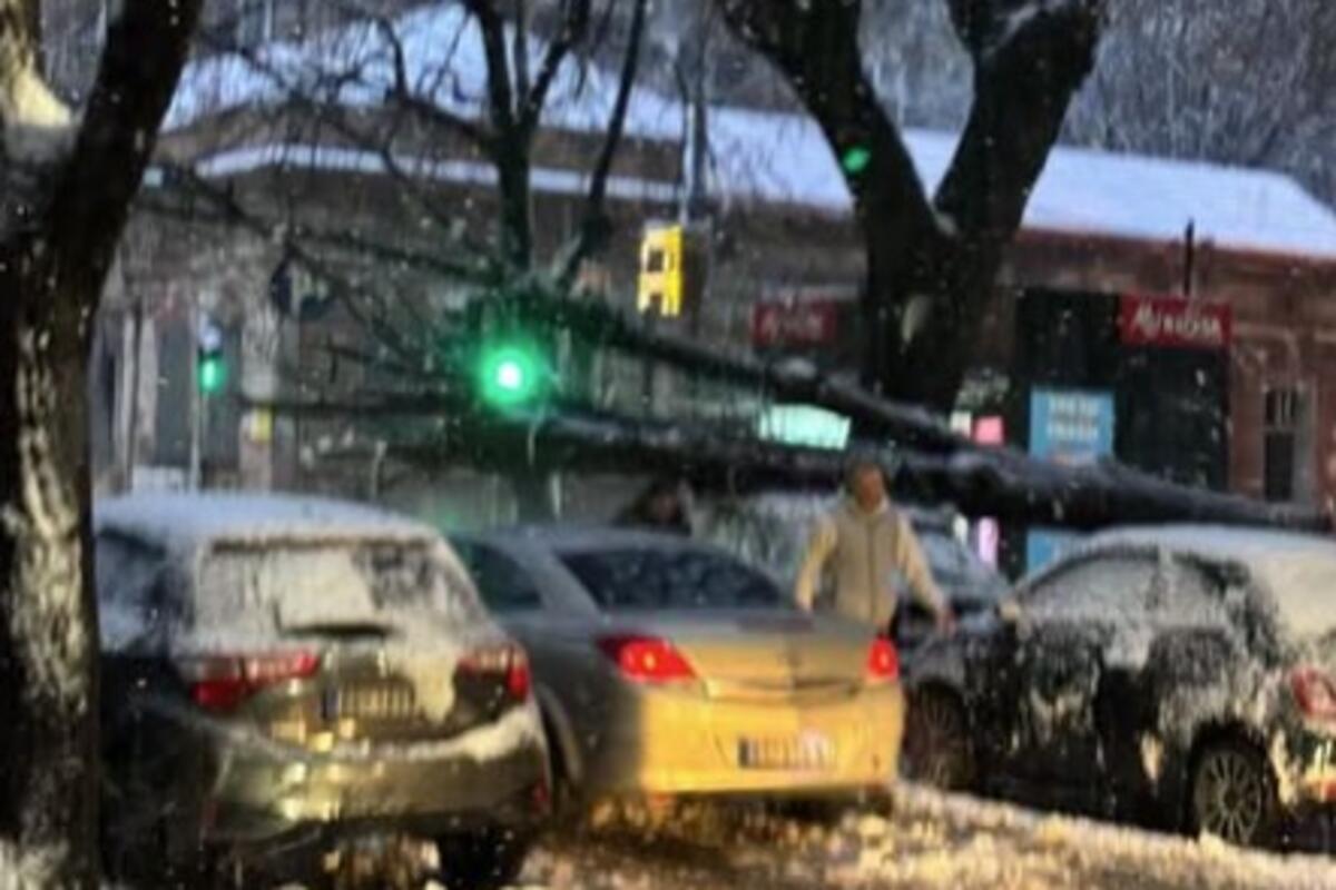 U Ulici Svetozara Markovića je tek veselo: Sneg zavejao, stablo se obrušilo na krov automobila! (FOTO)