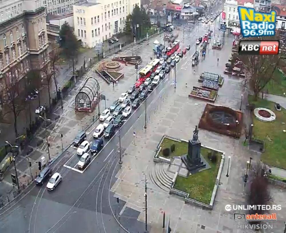 Kiša, koja ovoga jutra pada u Beogradu, dodatno otežava saobraćaj, a najveća gužva trenutno je na Plavom mostu kao i na Pančevcu.