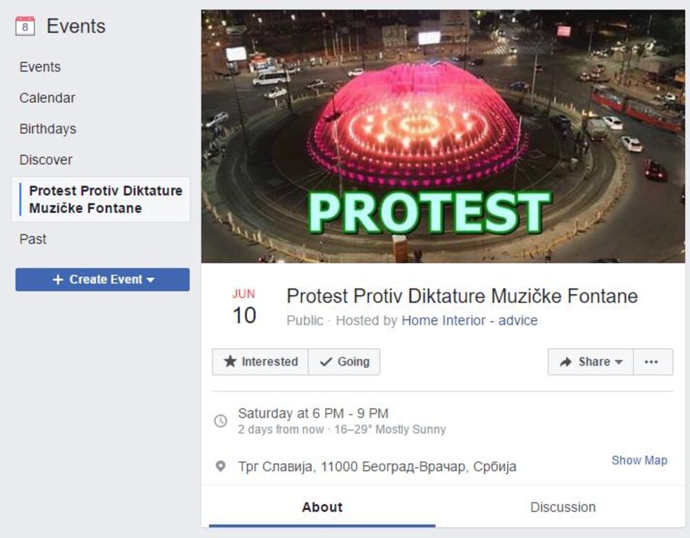Da muzičkom fontanom nisu svi oduševljeni govori i to što je na Fejsbuku organizovan protest upravo protiv fontane. Naime, učesnici Protesta protiv diktature pozvali su građane da se u subotu u 18 časova okupe na trgu Slavija i prisustvuju "Protestu diktature protiv muzičke fontane".