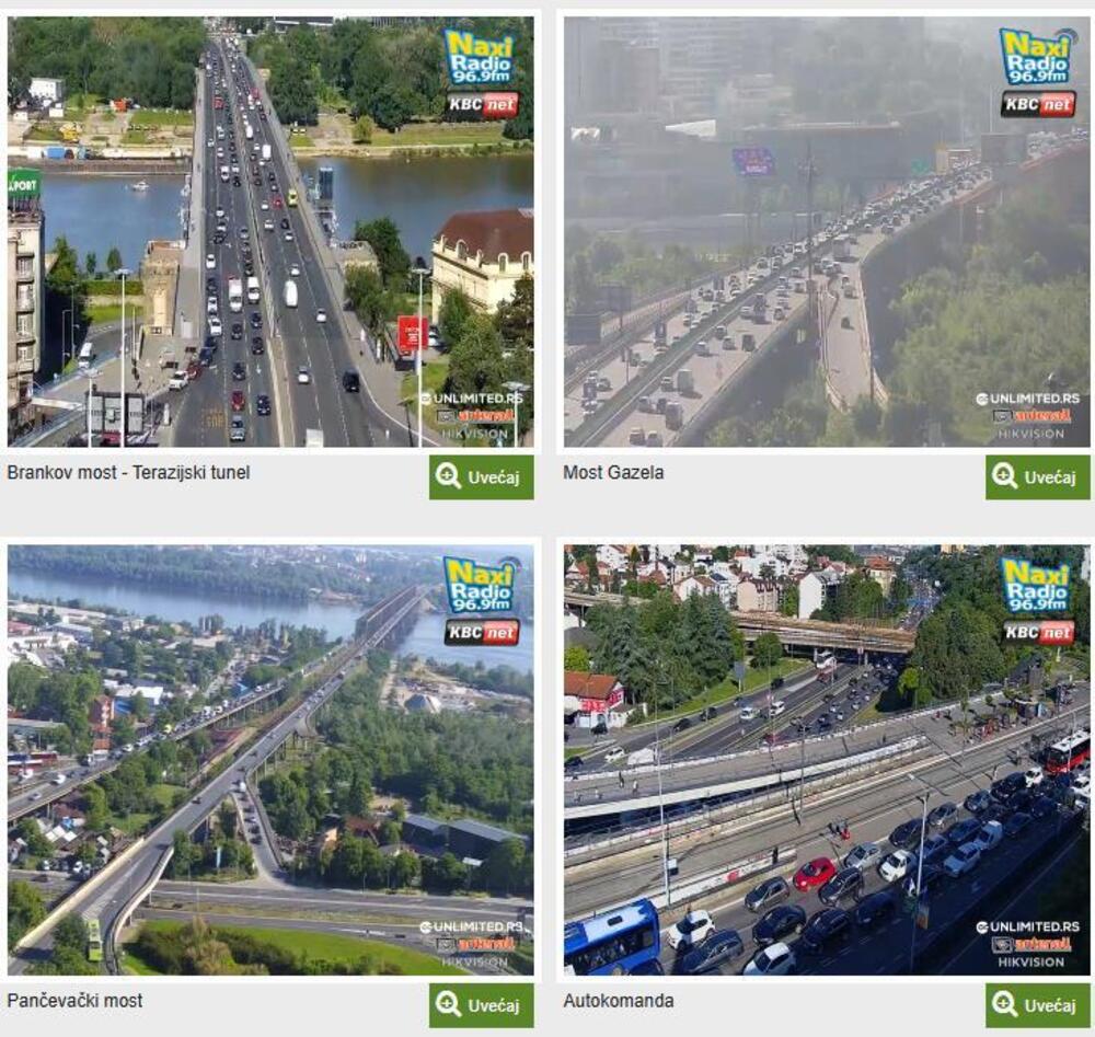 Kako se može videti na Naxi kamerama nema većih gužvi i sve glavne saobraćajnice su prohodne.