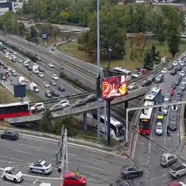 Kako javljaju građani, traka ka Ledinama stoji, saobraćaj je blokiran i čeka se da se saobraćaj ponovo uspostavi.