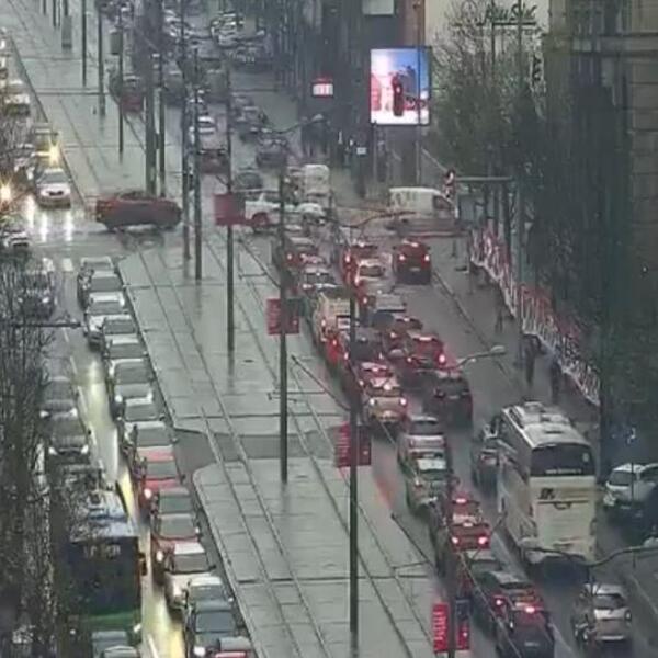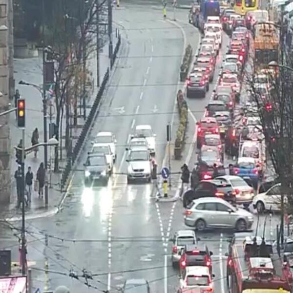 Kako se vidi na snimcima sa gradskih kamera, automobili se sporo kreću na najfrekventnijim saobraćajnim pravcima. Na moto-putu je zakrčenje sve od skoro Zmaja pa do Dušanovca, a Pančevački most je večito u crvenom ka gradu. Sve se crveni i na Autokomandi i svim prilazima tom kružnom toku.