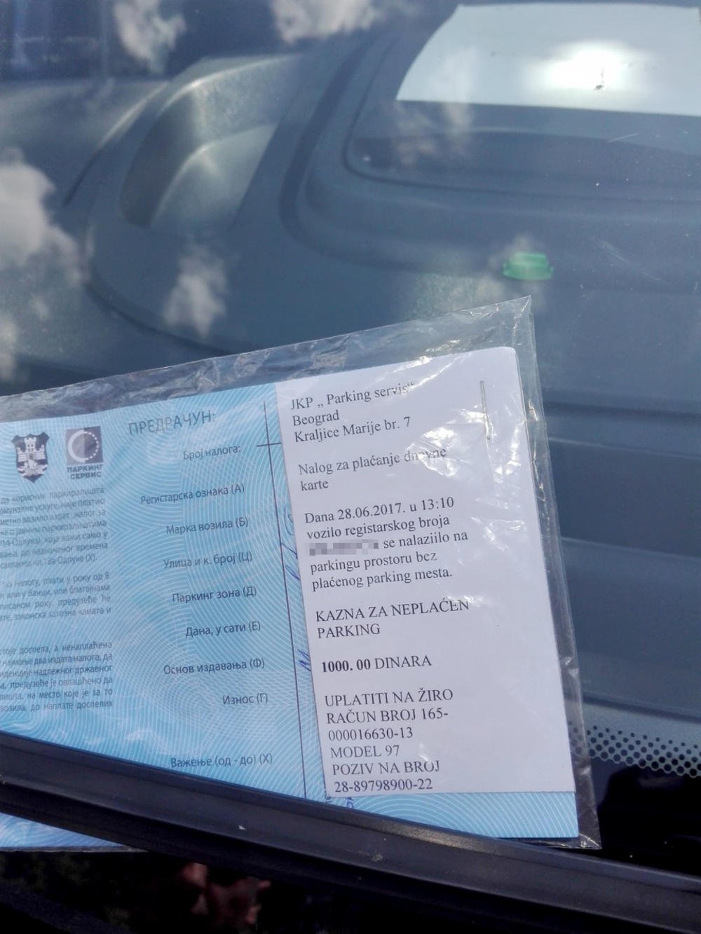 Na automobilima u Beogradu pojavili su se lažni nalozi za plaćanje dnevnih parking karata sa cenom od 1.000 dinara i računom, a na sreću ovu prevaru otkrio je radnik "Parking servisa"