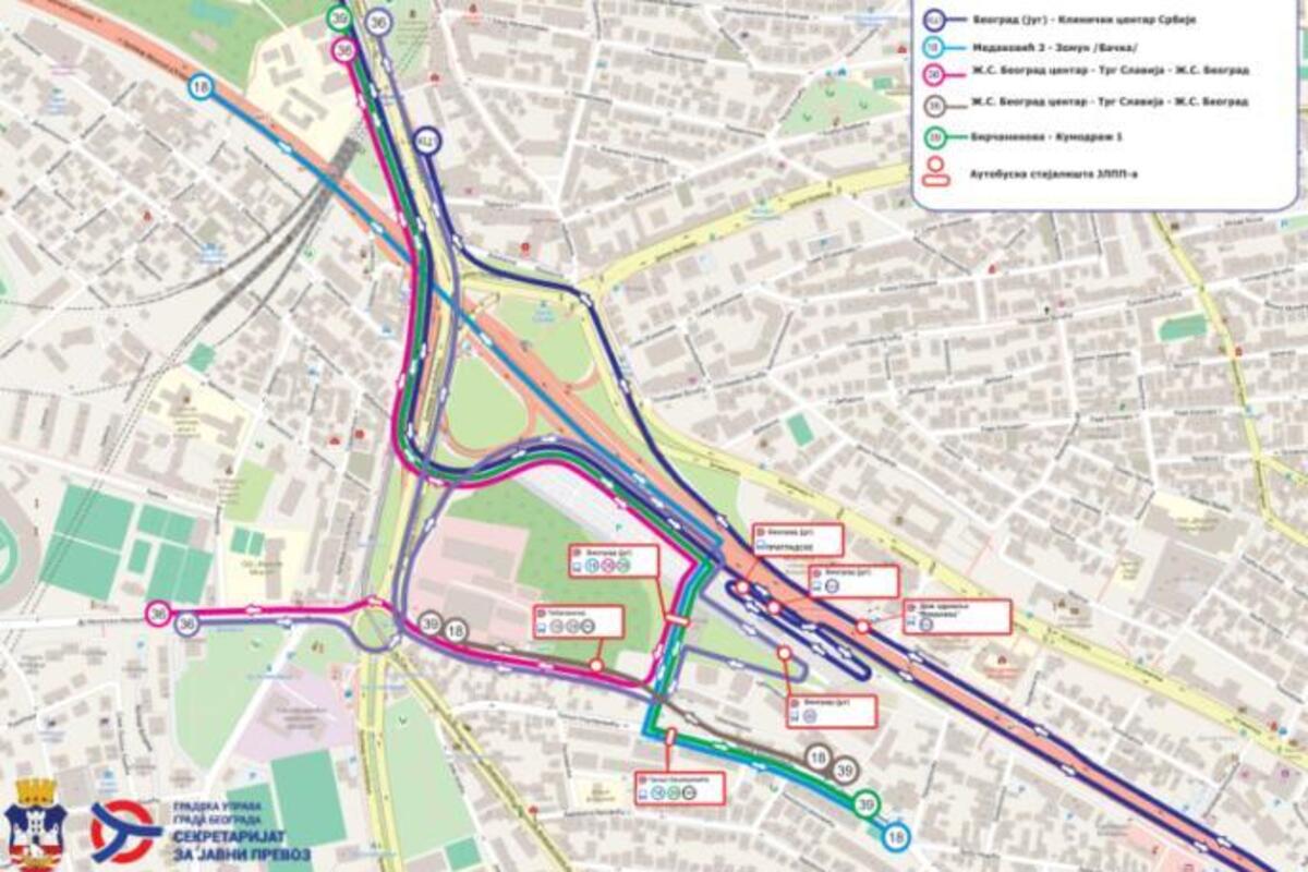 U zoni novoizgrađenog autobuskog stajališta "Beograd (jug)", prolaziće linije javnog gradskog prevoza na linijama 18, 36 i 39