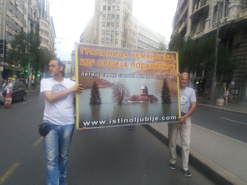 U centru Beograda održava se protest zbog potopa manastira valjevska Gračanica.
