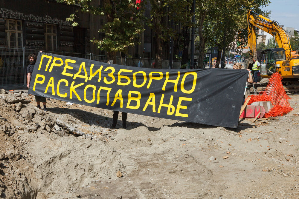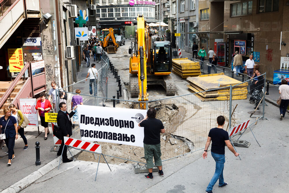Na ulicama Beograda trenutno se dešava veliki broj nekoordinisanih građevinskih radova koji stvaraju velike gužve onemogućavajući nesmetano funkcionisanje saobraćaja i normalan život grada. Ono što dodatno zabrinjava u ovom igranju našim sudbinama jeste činjenica da se za potrebe kampanje raskopavaju nedavno rekonstruisane ulice, da se nepotrebno raskopavaju autobuska stajališta, prilazi institucijama...
