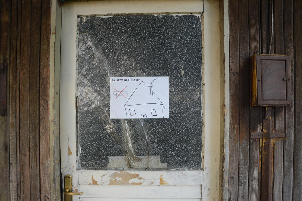 Ispred baraka protestovalo je nekoliko desetina ljudi koji su nosili transparente sa natpisima: "Ne damo!", "Bez krova niko"...