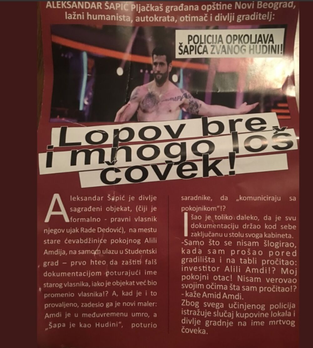 LOPOV BRE I MNOGO LOŠ ČOVEK! BEOGRAĐANI U NEVERICI, u sandučićima zatekli LETKE O ALEKSANDRU ŠAPIĆU!