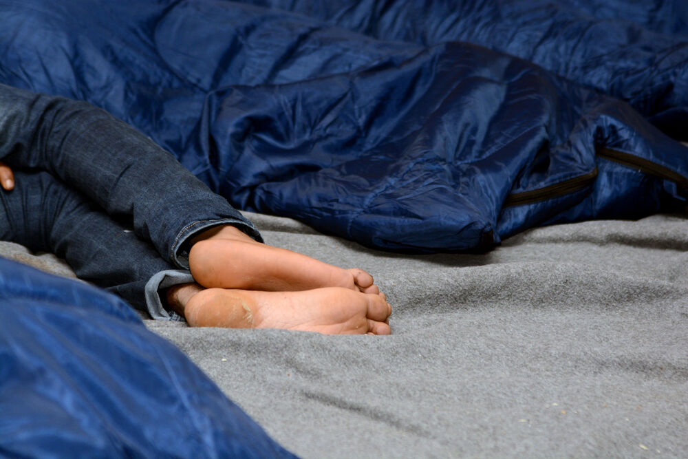 Neki nemaju sve što im je potrebno od odeće i obuće. Tako ovaj momak spava - potpuno bos, iako je napolju svega nekoliko stepeni iznad nule.