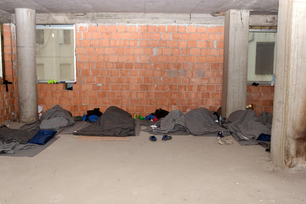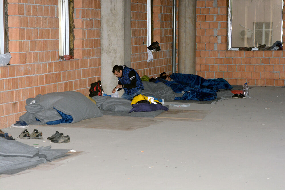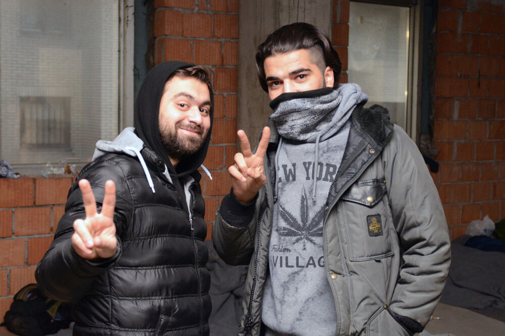 Petnaestak muškaraca, mahom izbeglih iz Sirije i Pakistana ovde provodi dane i noći. Vreme ubijaju razgovorom, ili šetnjama u obližnjem centru grada.