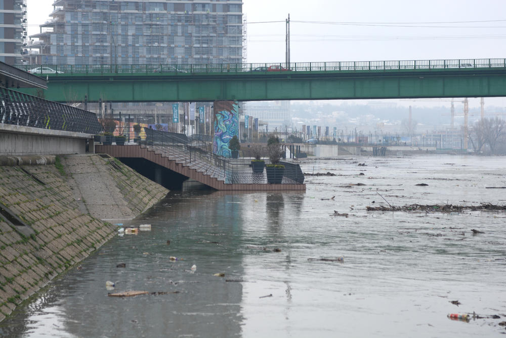 Lavina đubreta i granja plutala je rekom i zaista ružila prizor u blizini Brankovog mosta i trenutno najpoznatijeg gradilišta u zemlji
