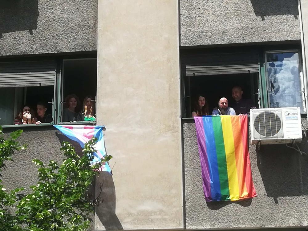 Za to vreme, tačno u 12 sati, pola sata posle početka litije, ispred kancelarija zaštitnika građana razvijena je zastava duginih boja povodom Međunarodnog dana borbe protiv homofobije, bifobije i transfobije.