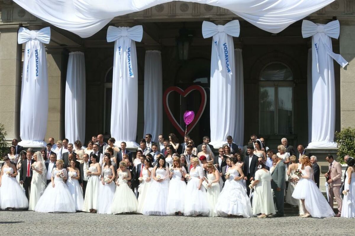 Preko 100 "sudbonosnih DA" izgovorili su danas zaljubljeni parovi ispred Skupštine Srbije na 20. jubilarnom kolektivnom venčanju.