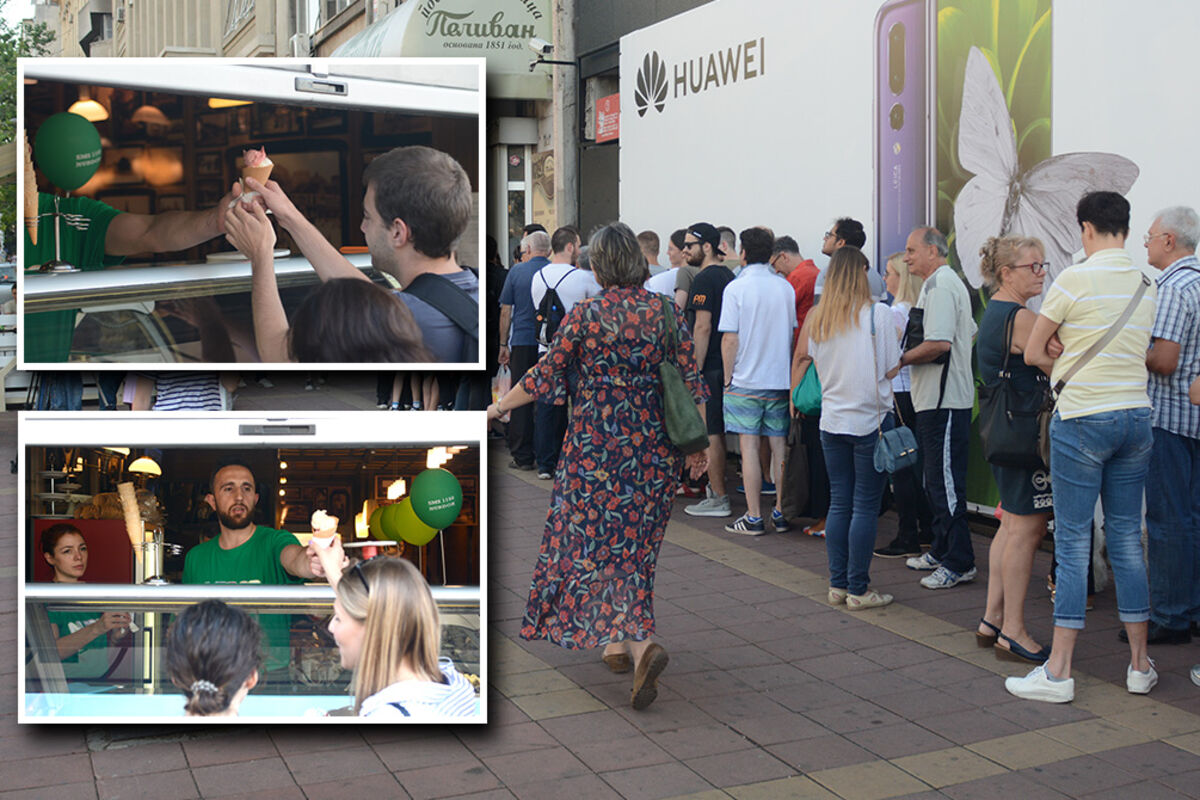 Ova humanitarna akcija nije jedini razlog zbog kojeg su se naši sugrađani okupili danas ovde. Svake godine na ovaj dan, sada već i tradicionalno, u ovoj poslastičarnici možete pojesti besplatan sladoled.