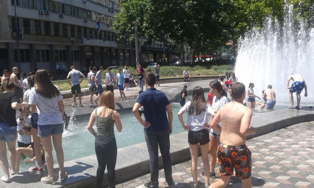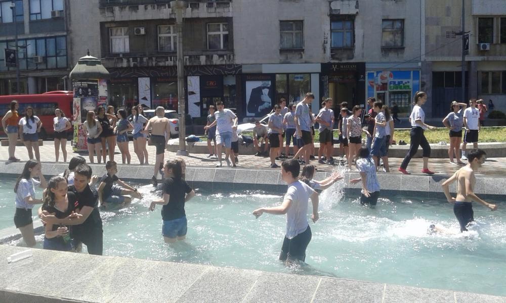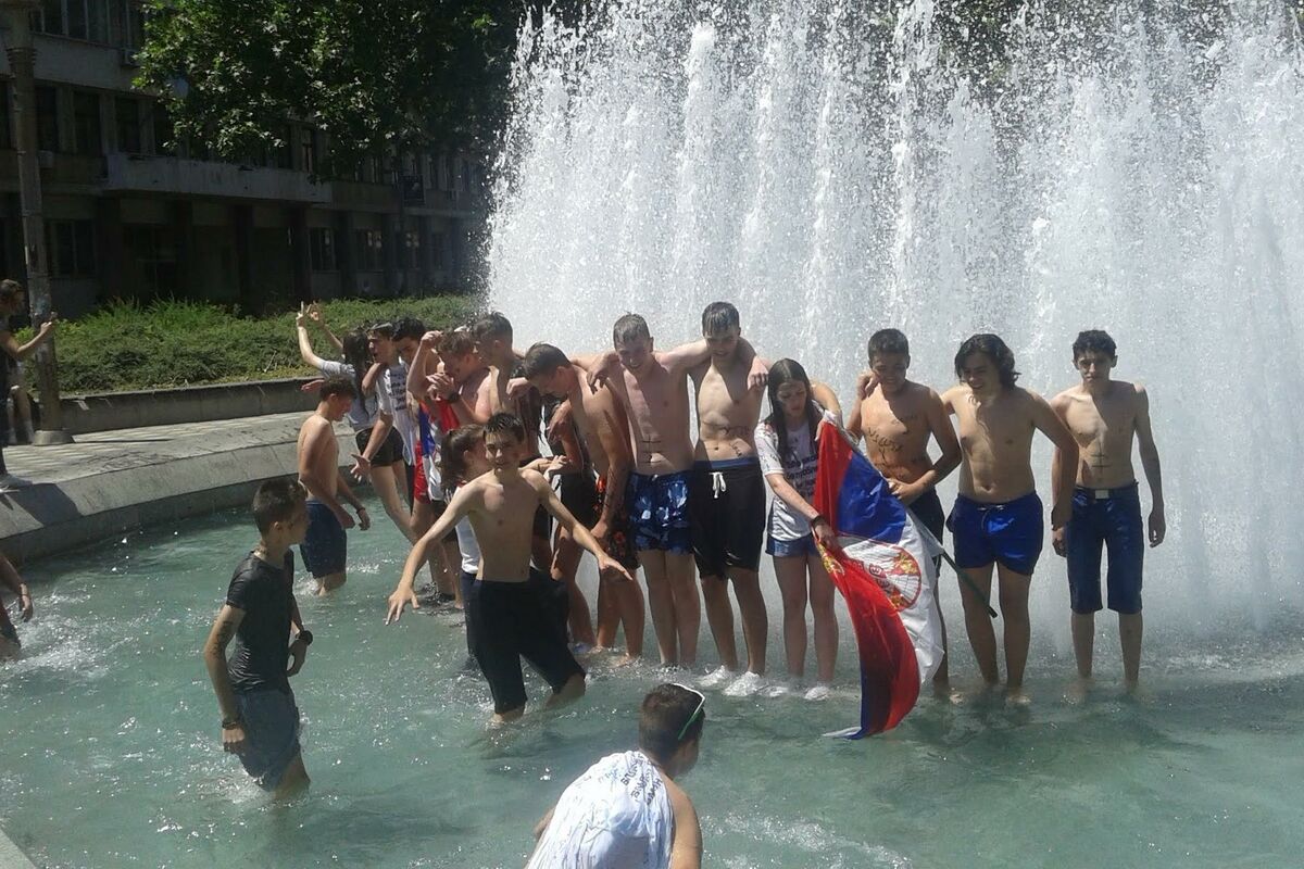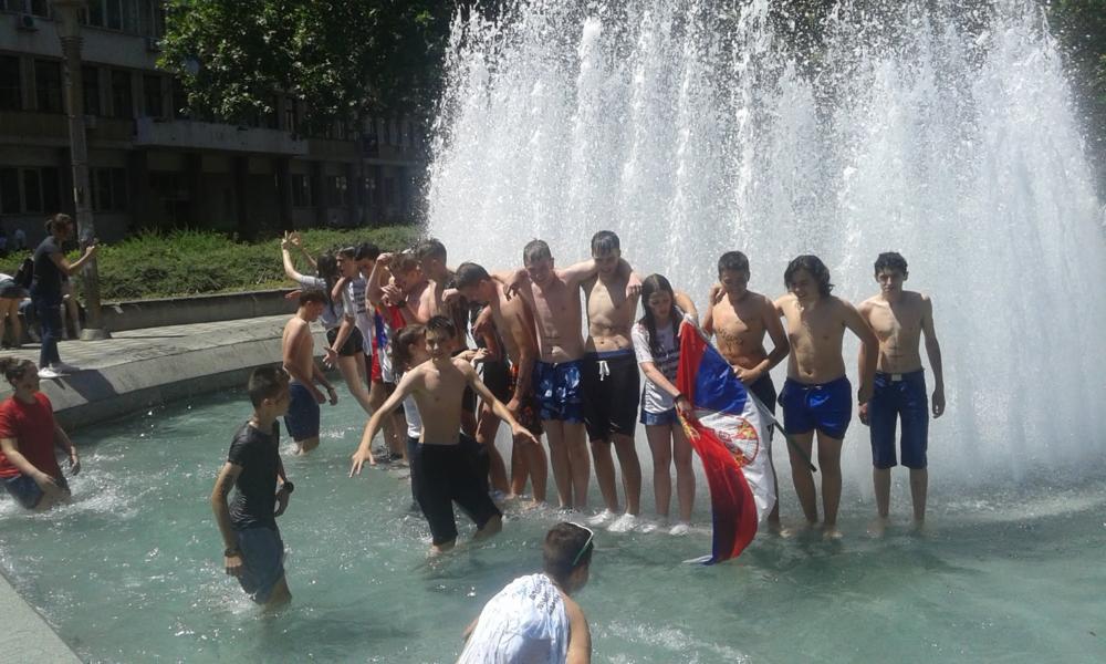 Tako je i ovog puta, gde su se mali maturanti okupali u fontani na Trgu Nikole Pašića.