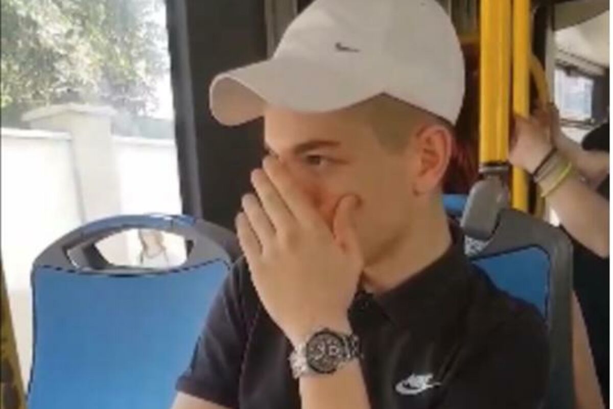 Naime, dečko je sve vreme sedeo na prvom sedištu, nije želeo da se pomeri i stavio je ruku na lice kako mu se ne bi otkrio identitet.
