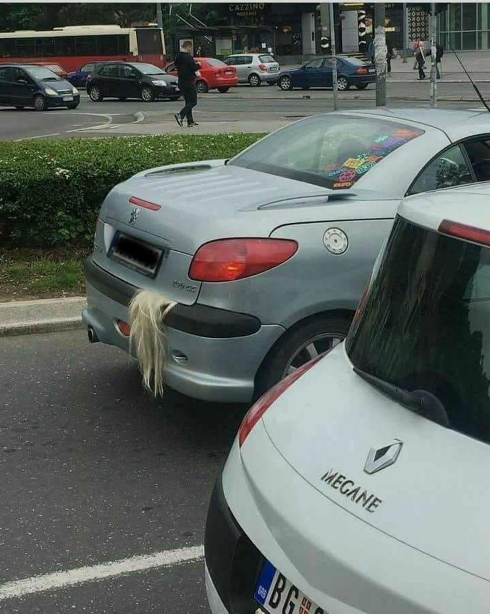Naime, na slici se vidi kosa koja viri iz gepeka, a mnogi su se zapitali da li je možda u pitanju otmica, ili samo loša perika koja je "zapela".