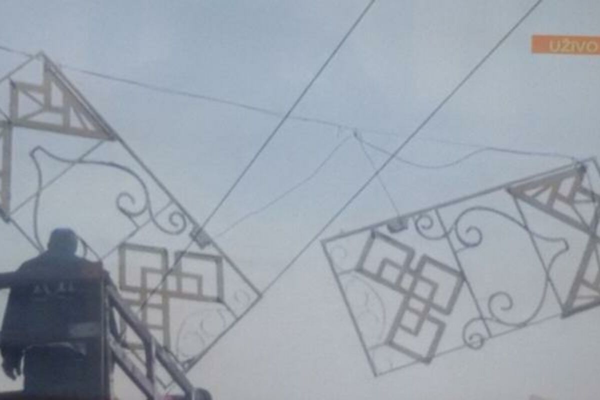 Zbog vetra došlo do kidanja kablova koji drže novogodišnju rasvetu, Foto: Printscreen/TV Prva