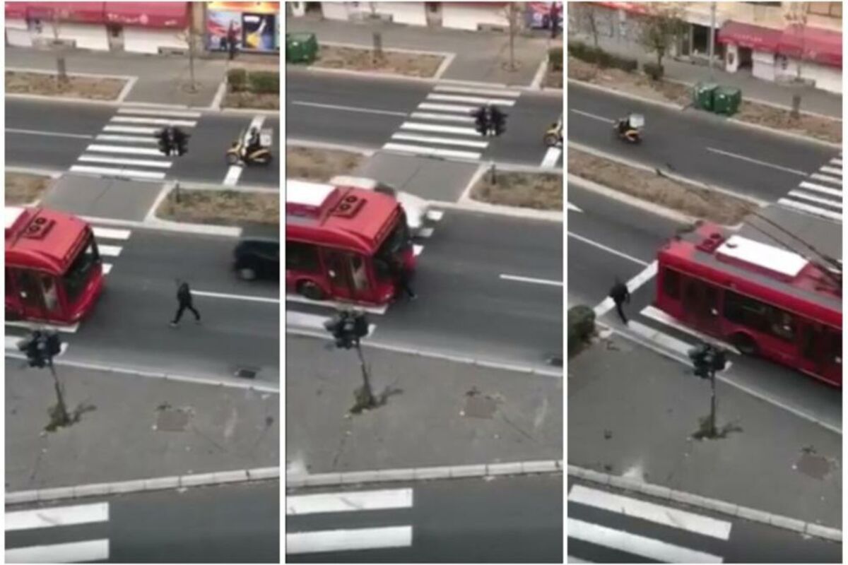 Naime, kako se može videti na videu koji je nastao sa prozora jedne zgrade u Cvijićevoj, muškarac je hodao posred ulice, a onda se zakucao u trolu.