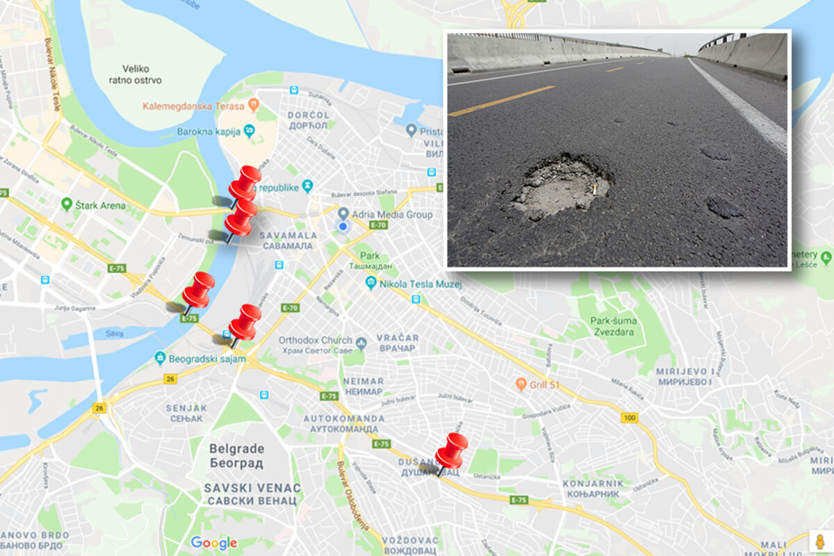 Fotografiju najnovijeg "asfaltnog bušača guma" objavio je korisnik Tvitera koji se predstavlja kao Beogradski posmatrač. Naime, na Mostarskoj petlji, tačnije u produžetku Savske ulice u smeru ka Beogradskom sajmu, spale su rešetke na ulici što može da bude potencijalna opasnost za gume nedovoljno pažljivih vozača.