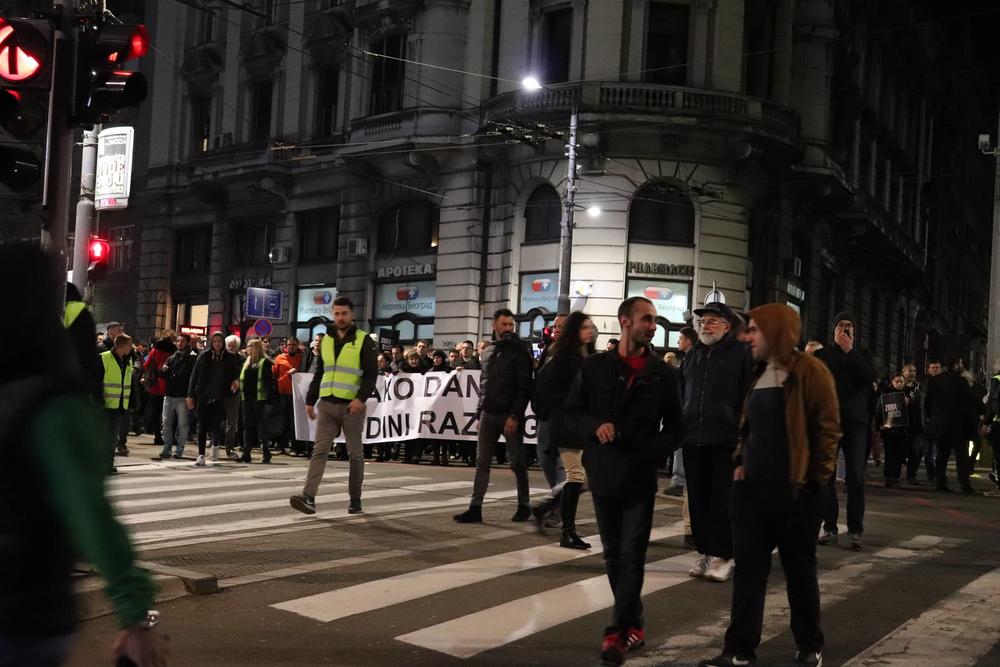 18.50 - Kolona je polako skrenula u ulicu Kneza Miloša. Sve se odvija mirno i nema nikakvih problema.